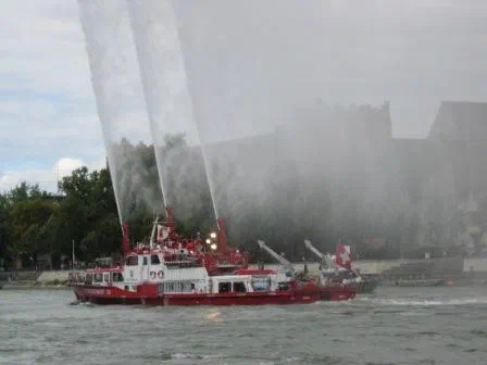 Zum Abschluss der Parade zeigte das Feuerwehrschiff der Basler Rheinhäfen, wie Wasserkraft auch definiert werden kann.