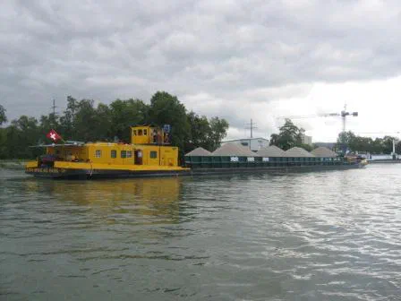 Im Jahre 1904 erreichte der erste Schleppzug (Schlepper mit einem Frachtschiff) den Hafen von Basel. Ein guter Grund also, im Sommer 2004 das 100-jährige Bestehen der Basler Rheinhäfen zu feiern. (www.portofbasel.ch)