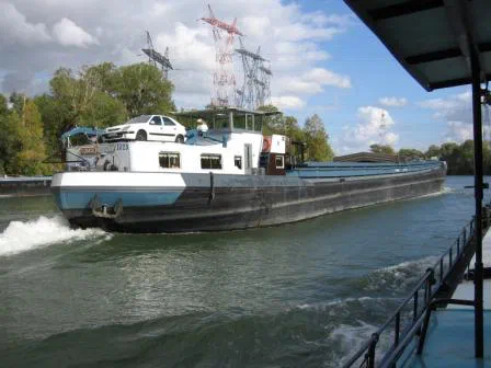 Die vielen Schiffe, denen man begegnet und von denen man überholt wird, lassen es nie langweilig werden. Frachtschiffe fahren meistens leer zügig zu Berg und sind als Talfahrer schwer beladen. Bereits vor der zweiten Schleuse haben wir Glück und treffen auf einen mit Alteisen beladenen 83 x 8.5 Meter grossen Frachter. Mit seiner Last tief im Wasser liegend durchpflügt er die Seine mit nur 9 Stundenkilometern. Mit dieser Geschwindigkeit können wir mithalten und fahren den ganzen Tag hinter ihm her.