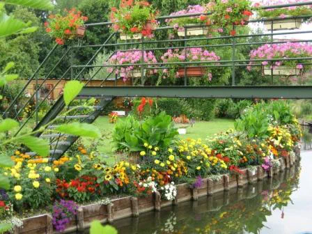 Die Hortillonnages bedecken eine Fläche von 300 Hektaren und sind von 65 Kilometern Entwässerungskanälen durchzogen. Man kann sich mit speziellen, von Elektromotoren betriebenen Booten durch einen Teil der Kanäle fahren lassen oder wie wir per Velo den Wegen um und durch die Garten- und Wasserlandschaft folgen.