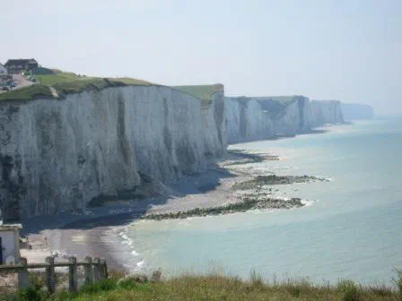 Gleich neben den letzten Häusern der Strandpromenade von Mers-les-Bains beginnen die Falaises, die Kalksteinfelsen. Der Küstenstrasse entlang fahren wir nach Ault.