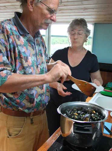 …und es gibt drei grosse Pfannen voll herrlich mundender Moules à la marinière
