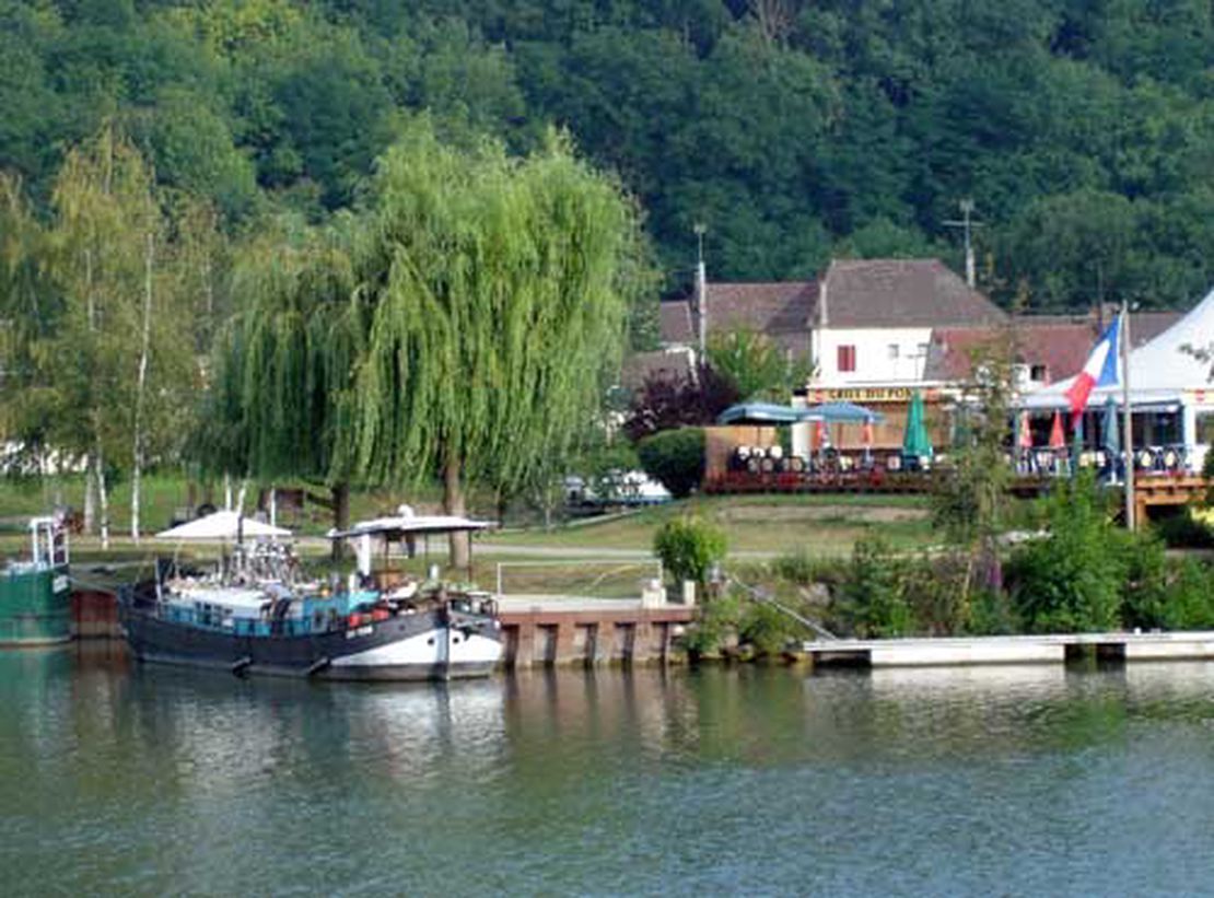 Bei dem wunderschönen Hafen von Pont l’Evéque/Noyon legen wir an, träumen vom Kauf einer Liegenschaft…