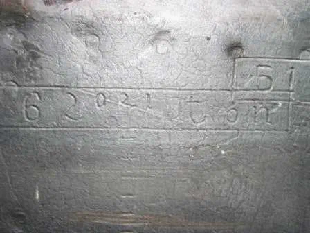 “62,291 ton” ist die zwischen 1940 und 1957 eingravierte Maximalverdrängung. Diese höchst zulässige Tauchtiefe des Schiffes liegt sogar unter der früher gültigen Maximaltauchtiefe von 51.306 Tonnen Ladevermögen.