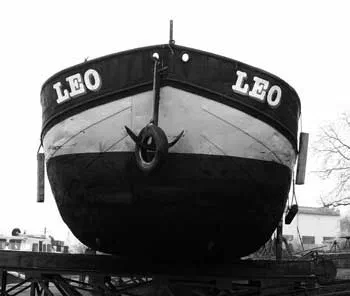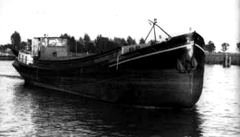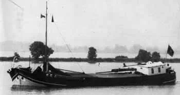Eine Luxe-motor von 1931. Der Bug erinnert noch an die Aak, jedoch ohne hochgezogene Bodenplanken; der nach vorne spitze Bug teilt jetzt das Wasser. Zudem hat sich das Heck komplett verändert.